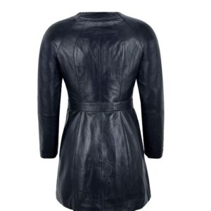 Women’s Black Long Sheepskin Leather Gothic Coat