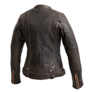 Women’s Orange Biker Leather Jacket